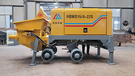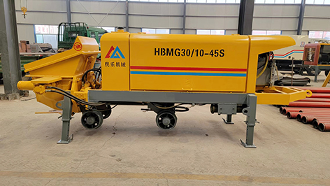 工作原理:當(dāng)液壓系統(tǒng)壓力油進(jìn)入一主油缸時,活塞桿伸出,同時通過密封回路連通管的壓力油使另一活塞桿回縮。與主油缸活塞桿相連的混凝土輸送活塞回縮時在輸送缸內(nèi)產(chǎn)生自吸作用,料斗中的混凝土在大氣壓力作用和攪拌葉片的助推作用下通過滑閥吸入口被吸入輸送缸。同時,另一主油缸在油壓的作用下,推動主油缸的活塞桿伸出并同時推動混凝土活塞壓出輸送缸中的混凝土,通過滑閥輸送口Y字管進(jìn)入混凝土輸送管。動作完成后,系統(tǒng)自動換向使壓力油進(jìn)入另一主油缸,完成另一次不同輸送缸的吸、送行程。如此反復(fù),料斗里的混凝土就被吸入和壓送出輸送缸,通過Y型管和出口連接的管道到達(dá)作業(yè)點,完成泵送作業(yè)。