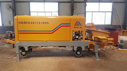 該泵是我廠吸收和消化當(dāng)前國內(nèi)外混凝土泵的先進(jìn)技術(shù),針對礦井混凝土施工諸多不便的條件,并結(jié)合長期混凝土泵的設(shè)計(jì)和制造經(jīng)驗(yàn),同科研單位共同研制生產(chǎn)的創(chuàng)新產(chǎn)品,改寫了礦用混凝土泵無法整機(jī)下井的歷史,改變了以往井下混凝土施工采用人工多層倒運(yùn)的傳統(tǒng)作業(yè)方式。