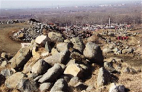 記者沿著一條路進(jìn)入采石場(chǎng)看到,開采較規(guī)則的石頭被裝入容積1立方米的木框里,但更多的是,開采過(guò)后,在近百畝的地面上,高低不平地散落著大小不一的石頭,有些地方,因?yàn)橥谑^,形成10多米深的溝壑。